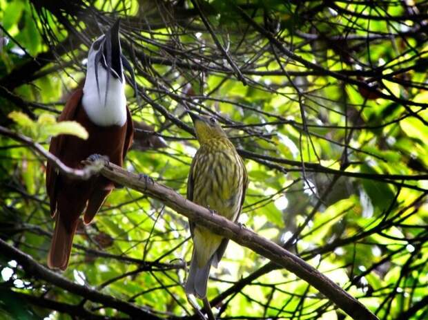 Самочки звонарей, в отличие от голосистых самцов, очень скромны и вообще не поют.