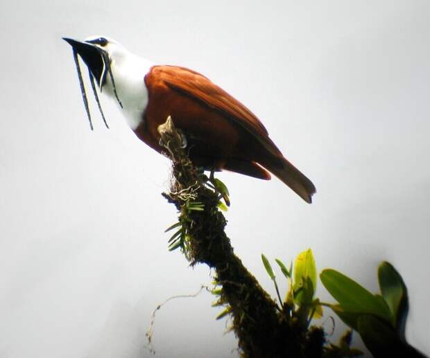 А чтобы усики стали поистине достойным пропуском в семейную жизнь, мужчинам приходится много кушать. Их рацион целиком и полностью состоит из плодов и ягод всех сортов и расцветок, исключая ядовитые. Когда растительность на лице юноши становится достаточно длинной, он начинает чувствовать в себе желание оставить потомство. С сентября по март все способные к размножению самцы-звонари столбят себе участки тропических лесов.