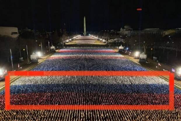 В это трудно поверить, но игра красок на площади перед Капитолием в Вашингтоне, где обычно происходит инаугурация очередного POTUSa, привела к тому, что освещение этого участка ясно показывает, под каким флагом пройдут торжества.