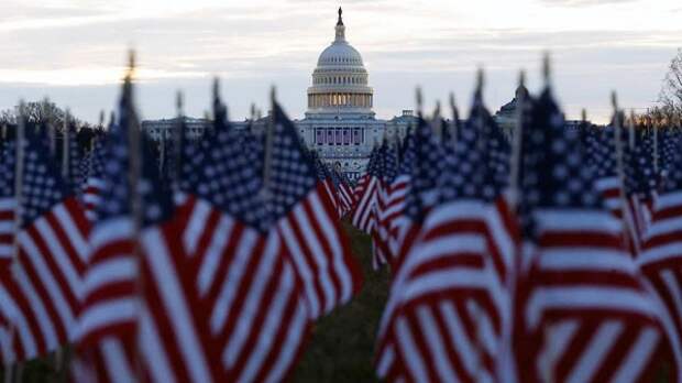 Всю площадь покрыли национальными флажками США. Их чуть ли не 200 тысяч.