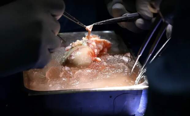 Свиная почка перед трансплантацией.