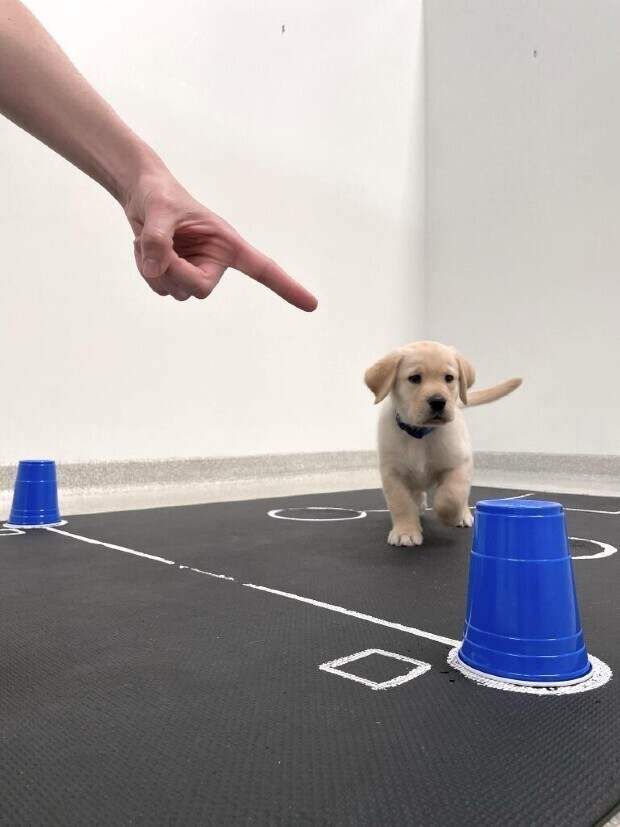 В финальном тесте щенков уже не направляли к стакану, под которым спрятано лакомство — они искали его сами. Ученые установили: хотя щенки с рождения знают, как реагировать на общение, инициированное человеком, способность самостоятельно инициировать это общение может появиться позже.