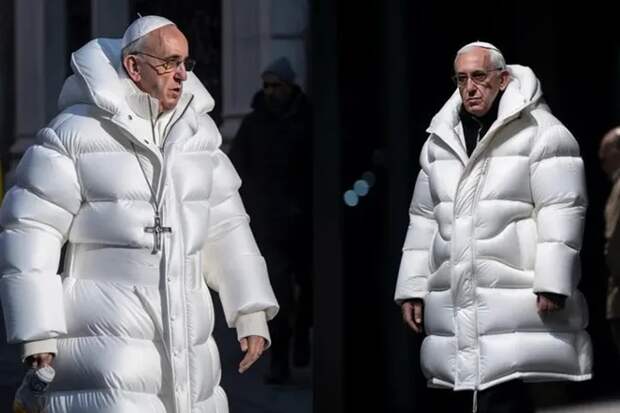 На фейковых фотографиях, созданных с помощью ИИ, Папа Франциск прогуливается в дизайнерском пальто, чего он никогда не делал.