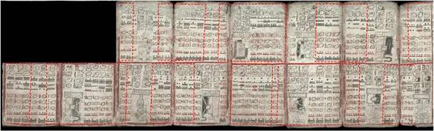Один из уцелевших письменных источников майя — Дрезденский кодекс. Это длинная полоса из обработанной коры дерева, сложенная гармошкой. Внутри — сложные таблицы, нарисованные от руки иероглифами и точками-черточками — именно так майя записывали числа.