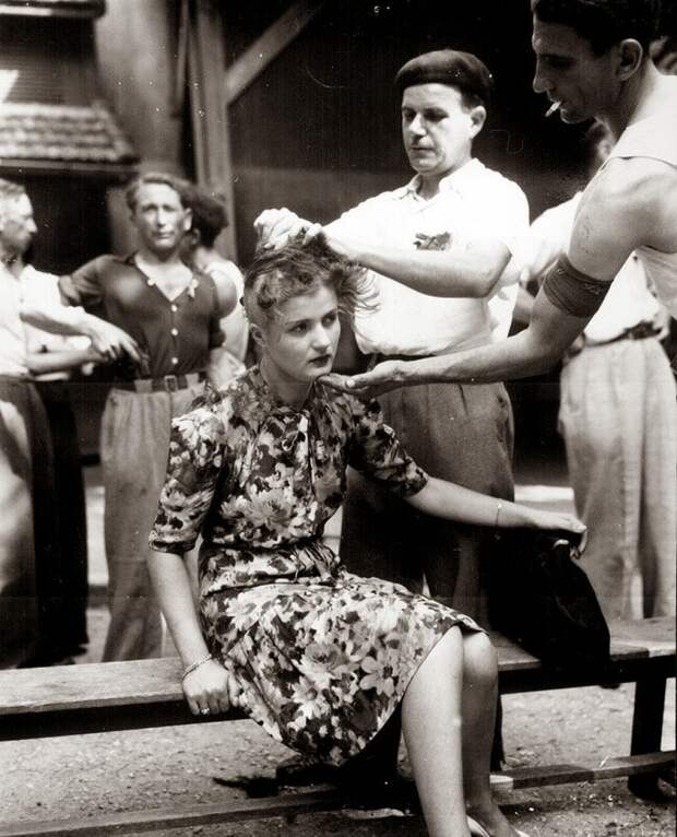 После освобождения Франции от оккупантов местные жители решили разобраться со своими же — и наказать тех, кто успел найти с немцами общий язык. В итоге около десяти тысяч французов, преимущественно женщины, испытали на себе силу народного гнева. Самым популярным наказанием стало бритье провинившейся наголо. На этом фото, сделанном 29 августа 1944 года в городе Монтелимар, увековечено бритье девушки, имевшей неосторожность сблизиться с немцами.