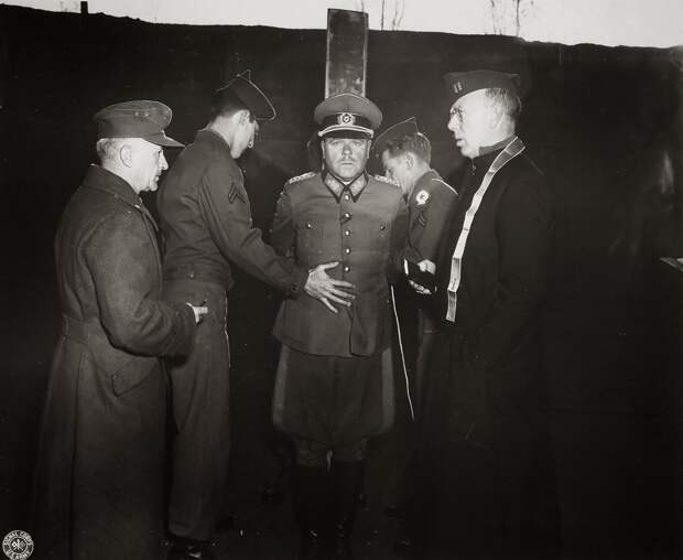 Немецкий генерал пехоты Антон Достлер был казнен американцами в итальянской провинции Казерта по обвинению в убийстве 15 военнослужащих американской диверсионной группы. Его казнь, состоявшаяся 1 декабря 1945 года, была тщательным образом задокументирована и на фото, и на кинопленке. Показательнее не бывает.